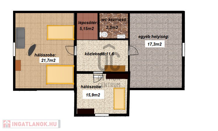 • 2 lakószoba