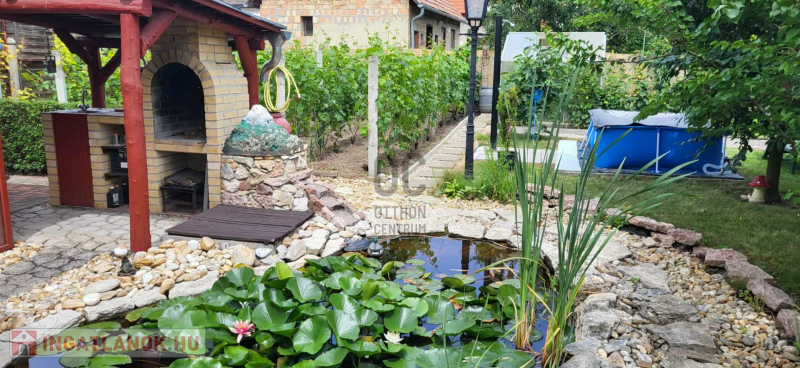 • fóliasátor, medencének kialakított terület és kis kerti tó