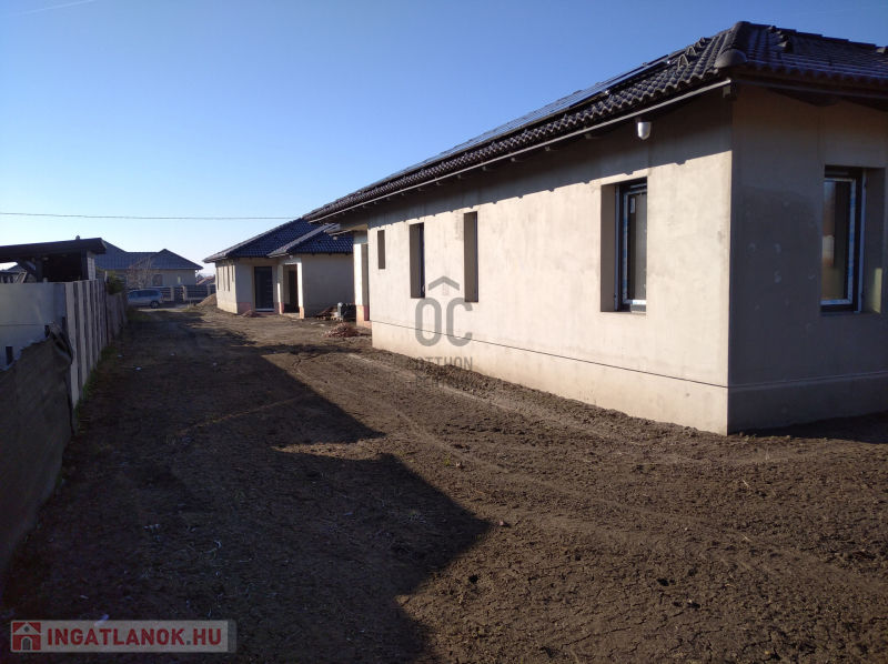 Az előírásoknak megfelelően 5m-es előkerttel és 6 m-es hátsóoldali távolsággal épülő MODERN EGYSZINTES HÁZ, tágas nappali-étkezővel, melyhez kapcsolódik a konyha , illetve a pergolás TERASZ, valamint a konyha teréből nyíló kamra is.