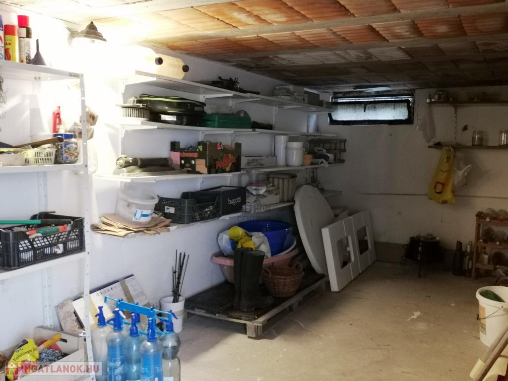 A FŐÉPÜLET 90 m2, nagy nappali-étkezővel, közlekedőből különnyíló két szobával. kamrával, fürdőszobával, vendég WC kialakítással épült 1986-ban. 30-as tégla falazattal, vasbeton gerendás födémmel, cserepes lemez héjazattal rendelkezik. Terasz alatt kívülről lejárható pince van.
