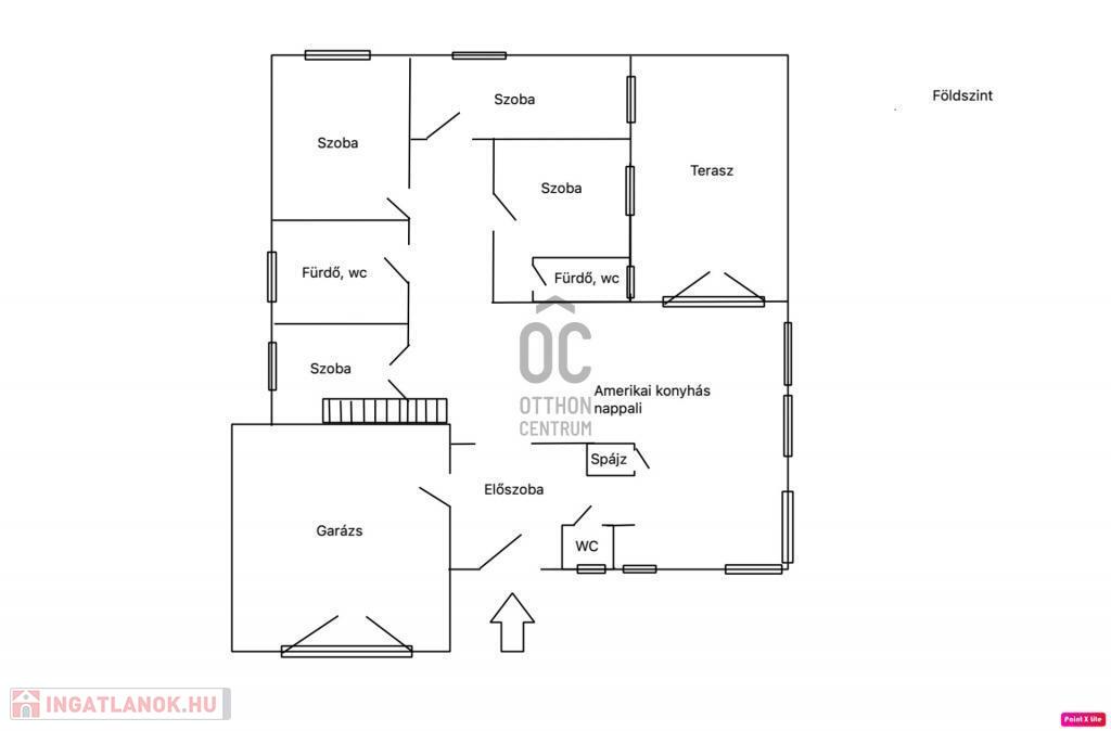 Földszint: amerikai konyhás nappali, étkező, szülői háló privát fürdőszobával