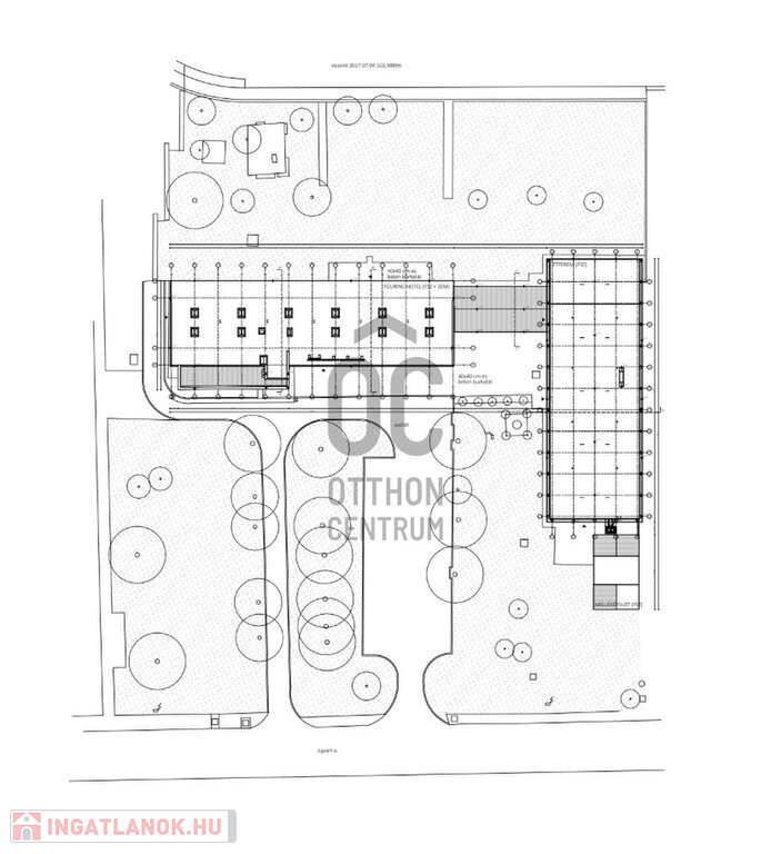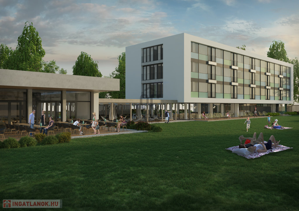 A telken a ’70-es évek elején épült szálloda- és étteremépületek állnak, összesen 66 darab kétágyas szobával. A telek elhelyezkedése, mérete és vízparti adottságai miatt kiemelkedő lehetőséget kínál turisztikai, szállodai vagy komplex fejlesztési célokra.