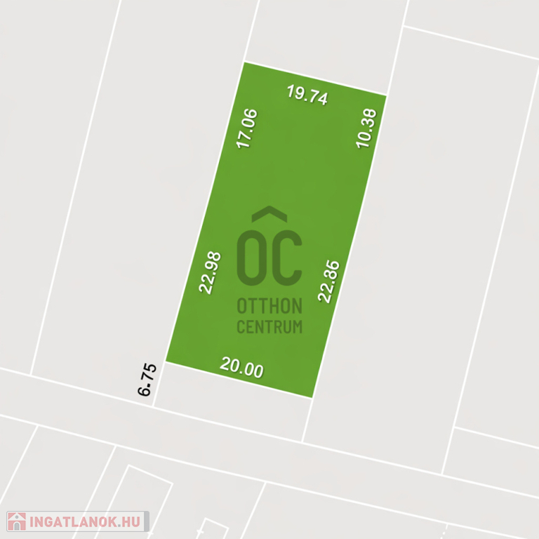 A telek 20 méteres utcafronttal rendelkezik, kedvező adottságokkal.