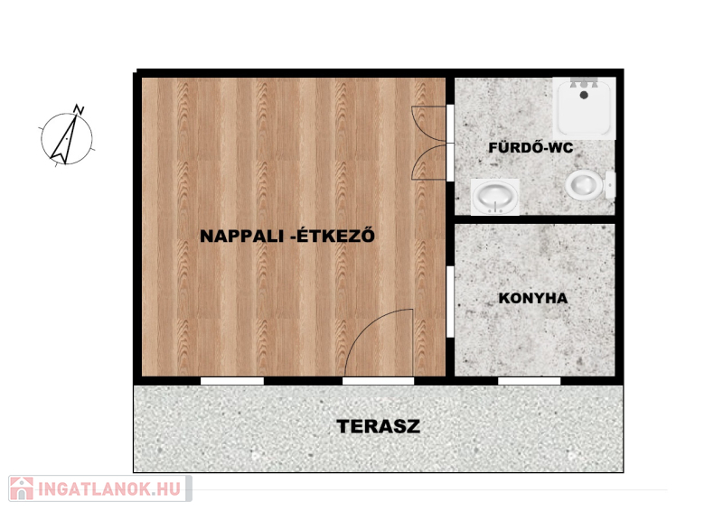 A ház 1970-es évek elején készült. Egy évvel ezelött lett felújítva. Tégla falazata, fa födéme, pala héjazata van. Külső nyílászárók műanyagok, nappali laminált parkettás másik két helyiség járólapos. Elrendezésében egyszerű, de komfortos. Egy nappali étkező, egy konyha és egy fürdőszoba-WC van kialakítva.