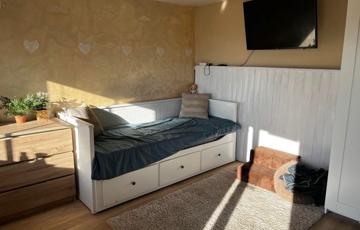 Az ingatlan csendes, fás környéken, a hegy lábánál helyezkedik el, a főúttól pár száz méterre van. Buszmegálló 5 perc alatt elérhető.