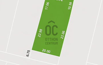 A telek 20 méteres utcafronttal rendelkezik, kedvező adottságokkal.