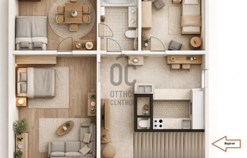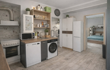 A praktikus elrendezés (nappali + 2 hálószoba, külön WC, tágas fürdő dupla mosdóval) kényelmes, jól élhető otthont biztosít.